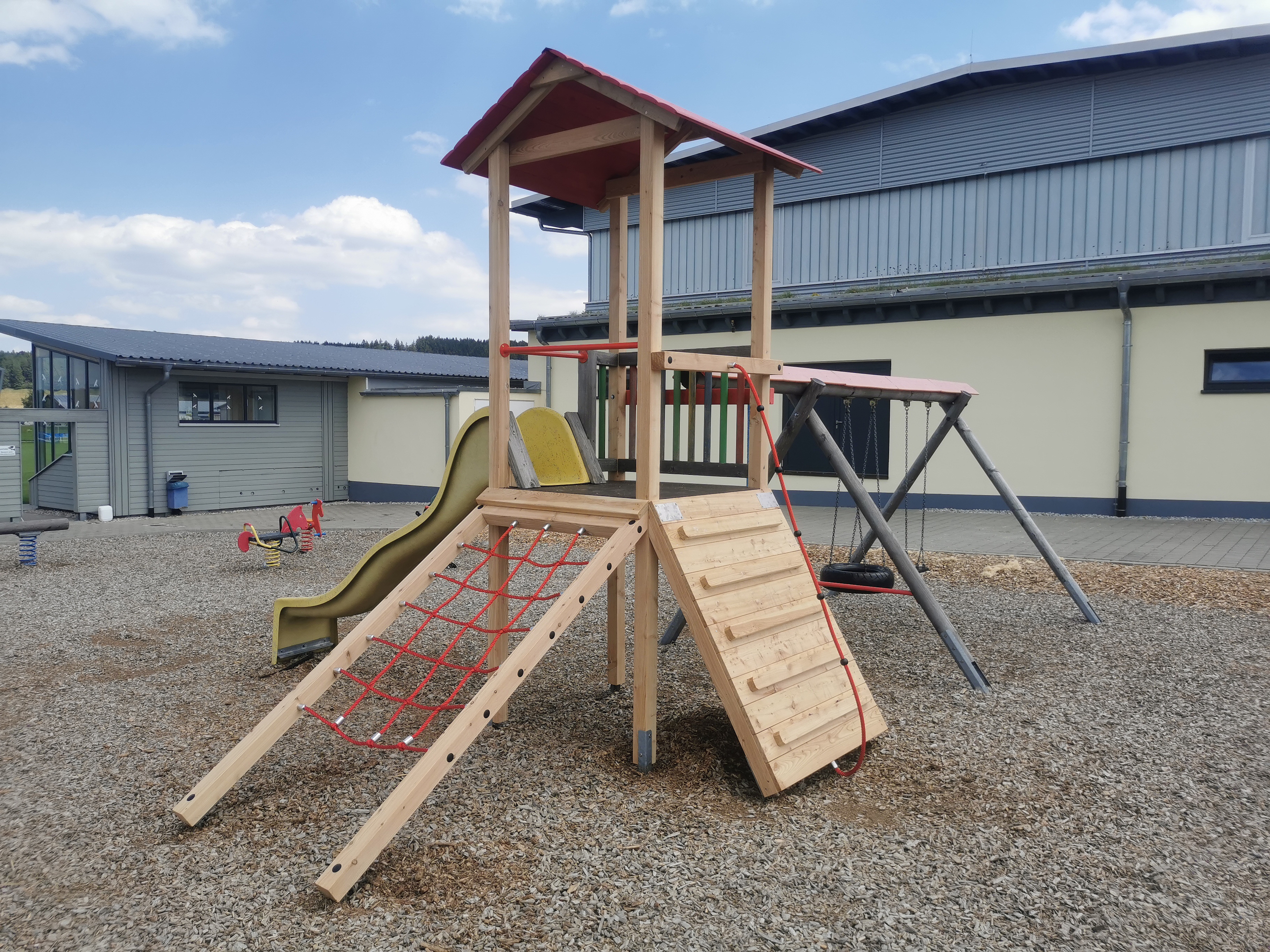 Gefördert wurde zum Einen die Erneuerung des SVE-Spielplatzturmes im Wert von 3.500€ Unser beliebter Spielplatzturm musste nach 14 Jahren Nutzung großteils ausgetauscht werden. Auf- und Abbau wurde natürlich ehrenamtlich durchgeführt.