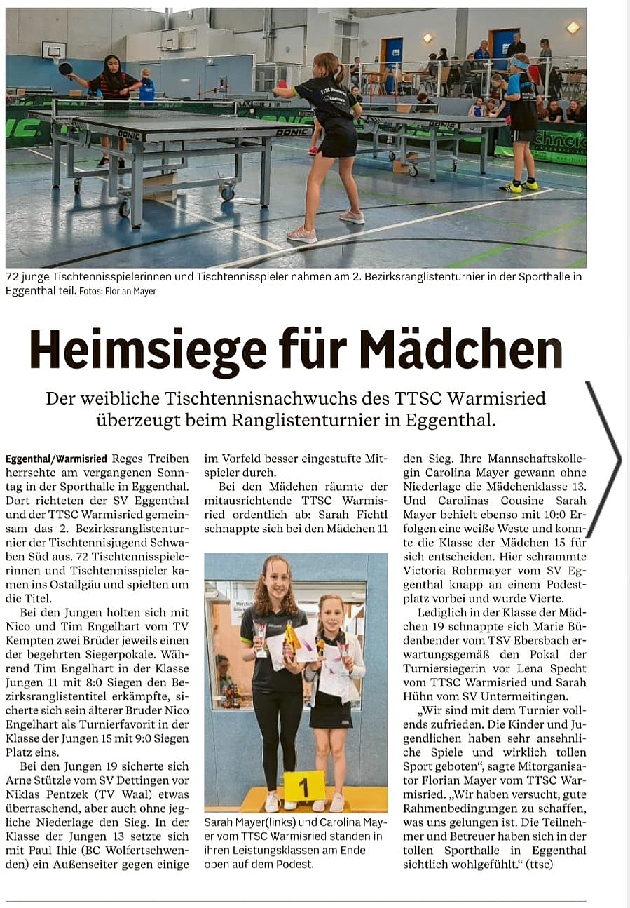 Der SV Eggenthal und der TTSC Warmisried richten zusammen das reibungslos verlaufende Turnier aus.
