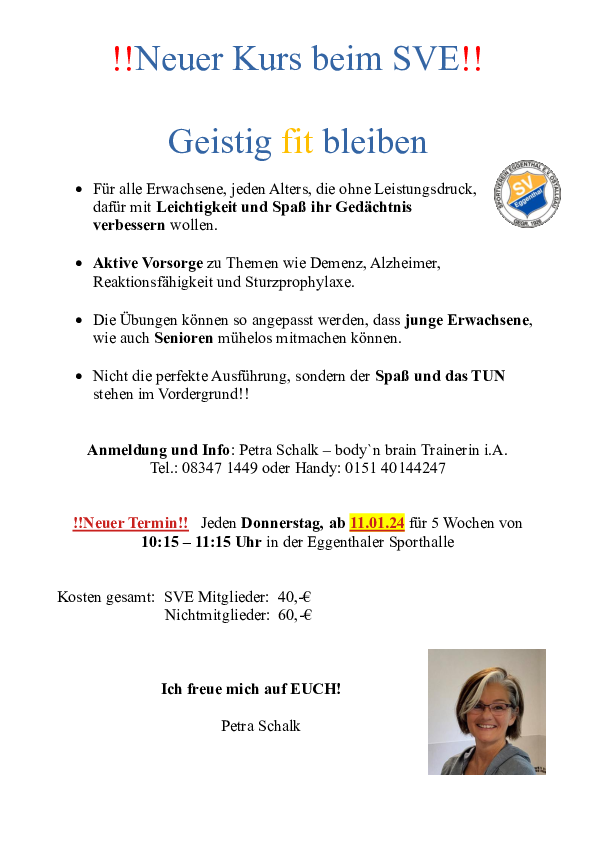 Neue Termine für Kurs - Geistig fit bleiben