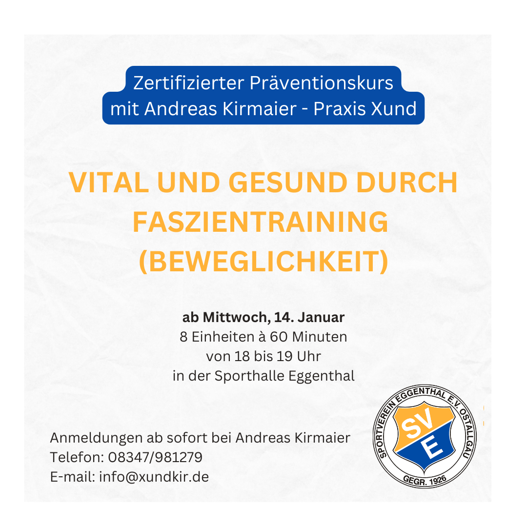 Im Januar startet der nächste Präventionskurs mit Andreas Kirmaier (Praxis Xund) in der Sporthalle in Eggenthal: