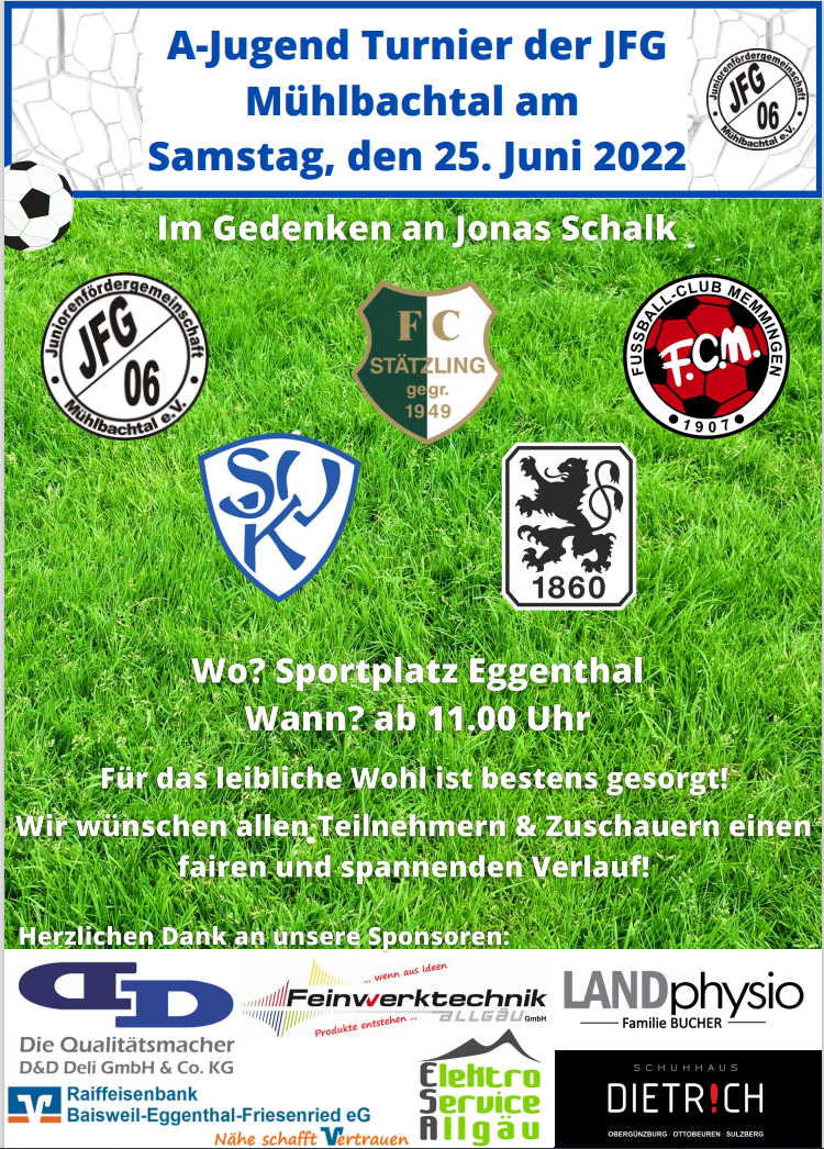 Am Samstag, den 25. Juni 2022 findet in Eggenthal ein top besetztes A-Jugendturnier statt.